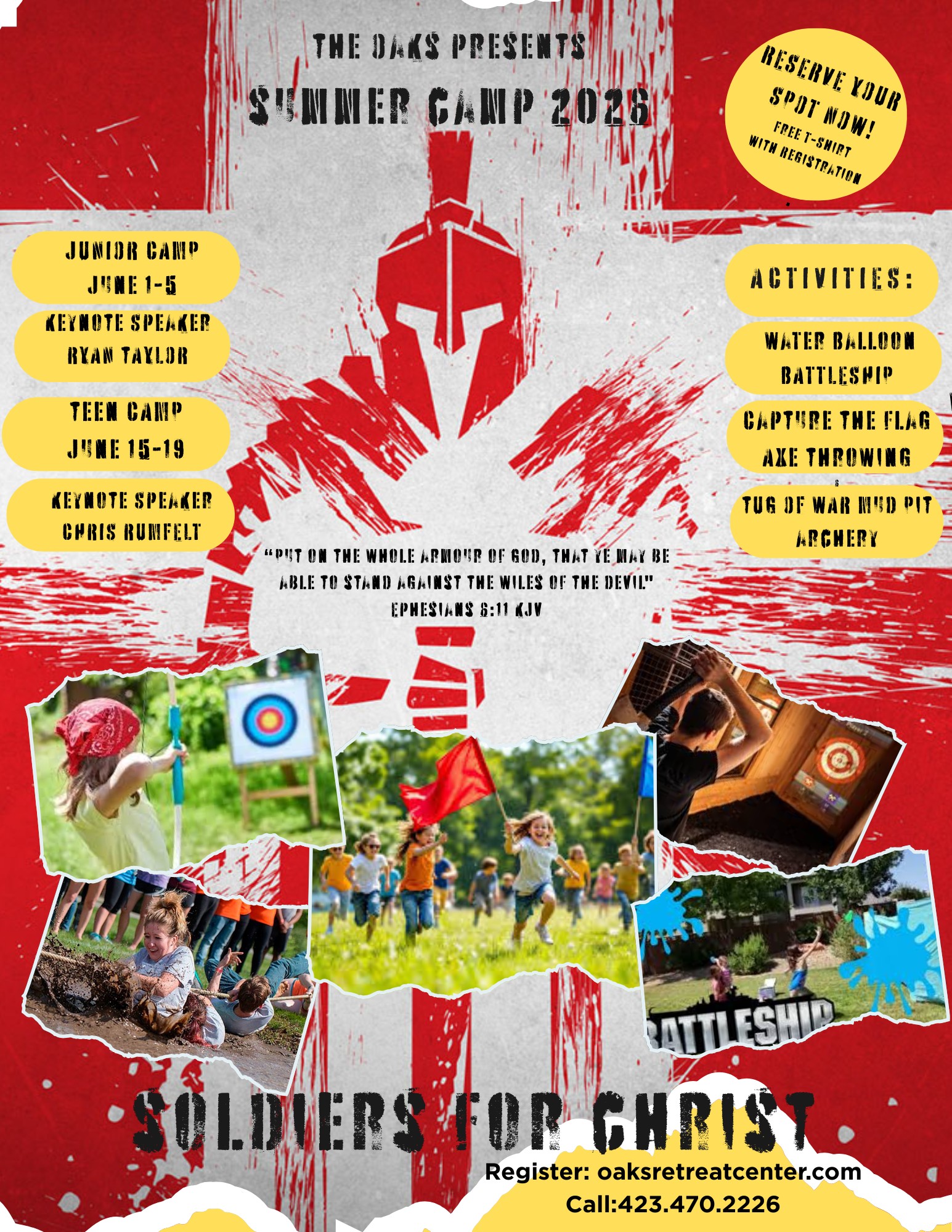 We’re excited to announce this year’s camp at Oaks Retreat Center with the theme: Soldiers for Christ.
